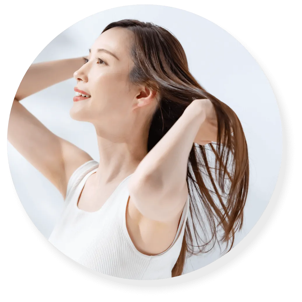 生薬の王と称される甘草の葉エキス。頭皮と髪のエイジングケアに着目し、ハリ・コシのある美しい髪へ。